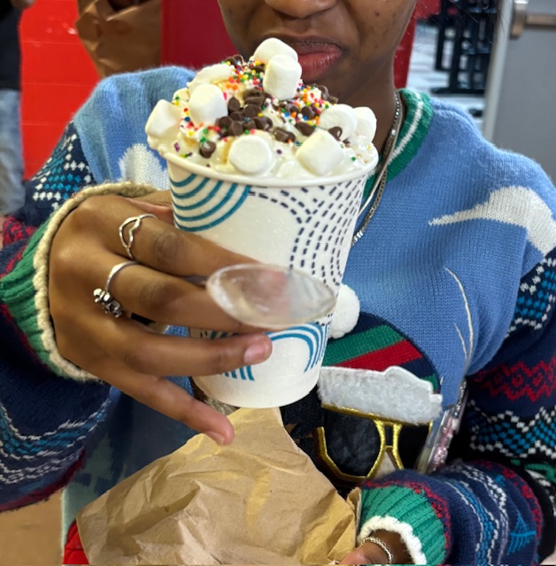 “Yeah, and I like mini chocolate chips, and sprinkles, and marshmallows…you know, to make a self-serve hot chocolate bar.”